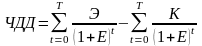 Чистый дисконтированный доход (ЧДД) определяется как превышение интегральных (суммарных) результатов над интегральными (суммарными) затратами или как сумма текущих эффектов за весь расчетный период, приведенная к начальному году.