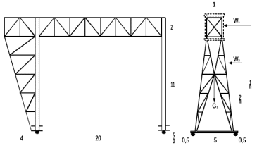 Рис. 7.1. Расчетная схема устойчивости козлового крана КК-45