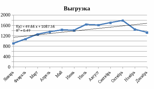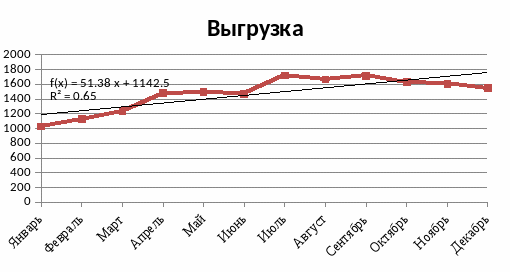 В результате получены тренды, описывающие объемы выгрузки и погрузки в КТК представленные на рис. 3.7-3.10.