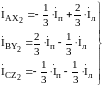 Распределение тока плеч питания по обмоткам в новой схеме подключения (2) соответствует формулам: