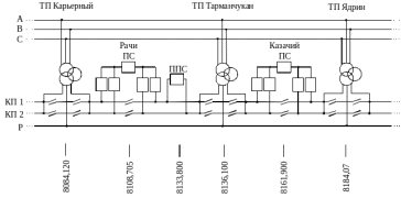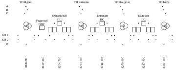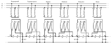 Рисунок 1.3 – Схема подключения силовых трансформаторов на участке между подстанциями Карьерный – Бира