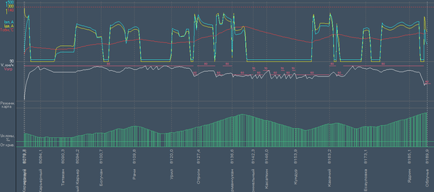 максимальный ток поезда: 1234 А на 8134,29 км;