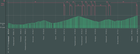 Рисунок 1.4 – Продольный профиль участка Карьерный – Ядрин для