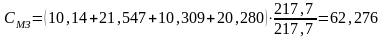 | Расходы на материальные затраты и запасные части | 62,28 |
