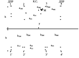 где h – высота провода относительно земли, y – высота точки М относительно земли, x – кратчайшее расстояние от провода 1 до точки М.