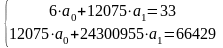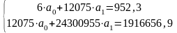 Для данных, указанных в таблице 2.4 система уравнения имеет вид: