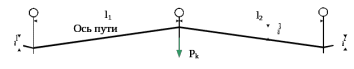 где l и l1 - расстояние да смежной и анкерной опоры соответственно, м; a3и a1 - зигзаги на расчетной и смежной опоре, м; z - расстояние от оси пути до анкерной опоры, м; H - натяжение контактного провода, даН.