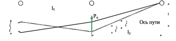 Расчетная схема для определения усилия от изменения направления контактного провода на кривых участках: