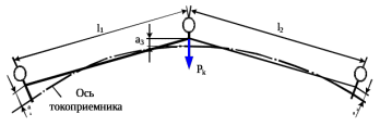 гдеa3, a1иa2 - зигзагирасчетной и смежных опор соответственно, м; l1 иl2- длины смежных пролетов, м; H - натяжение контактного провода, даН.