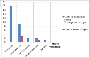 Таблица 4.2 – Статистика о нарушении работы изоляторов по месту установки и заводу-изготовителю