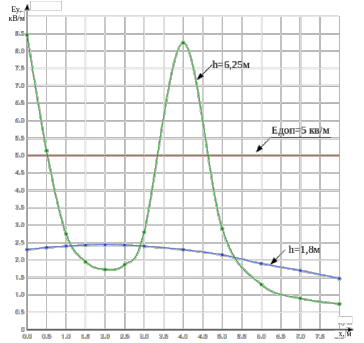 Графические зависимости напряженностей электрических полей от расстояния до оси путей представлены на рисунке 7.2.
