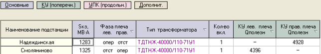 Рисунок 4.7 – Параметры тяговых подстанций участка Надеждинская – Смоляниново