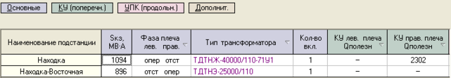 Рисунок 4.11 – Параметры тяговых подстанций участка Находка – Находка Восточная