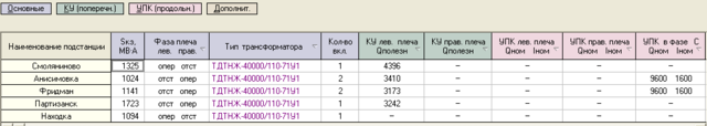 Рисунок 4.9 – Параметры тяговых подстанций участка Смоляниново – Находка