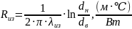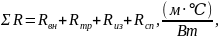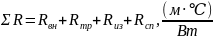 Термическое сопротивление на поверхности покровного слоя изоляции: