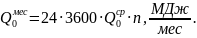 Количество тепловой энергии, полученной калорифером от электроприводов в месяц: