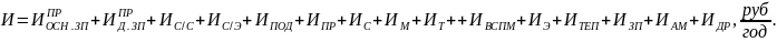 Калькуляционными статьями являются сырье и материалы, топливо на технологические цели, покупные электроэнергия и теплота, вода на технологические цели, основная заработная плата производственных рабочих ИПРОСН.ЗП, дополнительная заработная плата производственных рабочих ИПРД.ЗП, отчисления на социальное страхование с заработной платы производственных рабочих ИС/С, расходы на содержание и эксплуатацию оборудования ИС/Э, расходы на подготовку и освоение производства ИПОД и прочие расходы ИПР, руб/год.