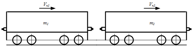 , то после удара и сцепления конечная скорость обоих вагонов