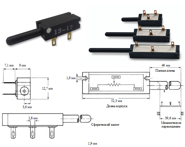 В качестве чувствительного элемента измерительного устройства может быть использован аналоговый резистивный датчик линейных перемещений SRLPS 9600 Series, представленный на рисунке 7.1.