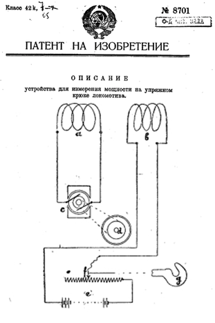 Рисунок 6.1 – Схема: а - динамометра (патент СССР №4723 от 29.02.1929); б - устройства для измерения мощности на упряжном крюке локомотива (патент СССР №8701 от 30.03.1929)