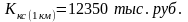 – сметная стоимость строительства 1 км контактной сети, тыс.;