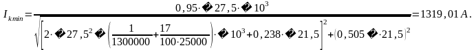 На участке переменного тока минимальный ток КЗ определяется по выражению: