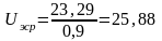 при переменном токе, равно 25 кВ, это эффективное значение, скорость же движения выпрямительного электровоза определяется средним значением выпрямленного напряжения, приведенным к напряжению КС, поэтому: