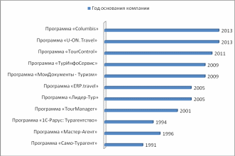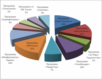 По итогам анализа, для дальнейшего исследования были выбраны 5 программ: 4 компании – это набравшие наибольшее количество баллов по результатам критериев («МоиДокументы-Туризм»; «ERP.travel»; «TourControl»; «U-ON. Travel») и 1 компания, являющаяся одним из лидеров по результатам анкетирования («Само-Турагент»).