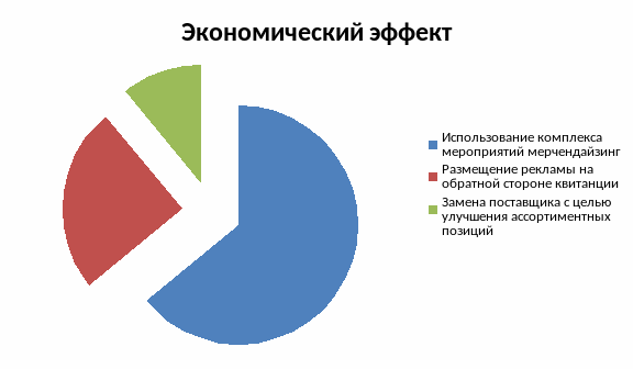 Использование комплекса мероприятий мерчендайзинга в магазине «СТРОЙГАРАНТ» позволит увеличить рост продаж на 10%. Экономический эффект от проведенного мероприятия составит 5558,12 тыс. руб.Мероприятие по размещения рекламы на обратной стороне квитанции ЖКХ, позволит увеличить рост продаж. Экономический эффект от данного мероприятия составит 3933,6тыс. руб.Совокупный экономический эффект от предложенных мероприятий составил 9649,95тыс. руб.