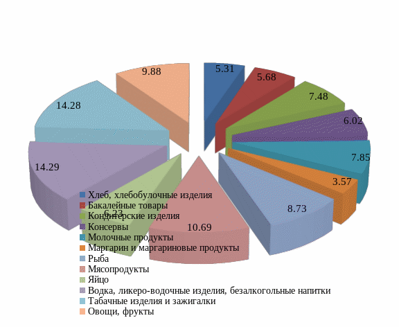 Наглядно структура ассортимента продовольственных товаров ООО "Визит-ДВ" в стоимостном выражении приведена на рисунке 2.9