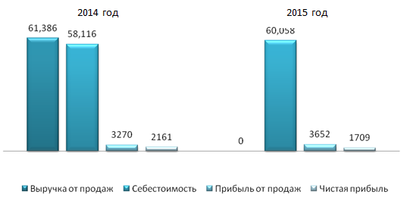 Наблюдается динамика устойчивого роста основных технико-экономических показателей. За период 2014-2015 гг. значительно увеличилась выручка от продаж, которая с 61 385 627 тыс. руб. в 2014 г. увеличилась в 2015 г. на 3,8 % и составила по результатам годовой деятельности 63 709 419 тыс. руб. Абсолютное увеличение составило 2 323 792 тыс. руб.