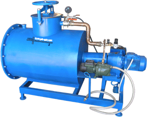 Установка состоит из пеногенератора и смесителя, смонтированных на одной раме и соединенных шлангами.