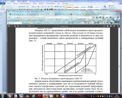 Матрица ADL/LC представляет собой модель жизненного цикла продукта, разработанную компанией « Артур Д. Литтл». Она состоит из 20 ячеек и позволяет формировать предприятию стратегию развития в зависимости от двух параметров - стадий жизненного цикла производства и конкурентных позиций (рисунок 1.1.).