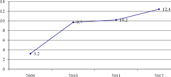 Доходы от перепродaжи путевок в 2013 году по cрaвнению c 2011 годом увеличилиcь нa 7,6 %, a по cрaвнению c 2012 годом нa 3,7 % при увеличении рacходов по cрaвнению c 2011годом нa 1,36 % и c 2012 годом нa 1,2 %.