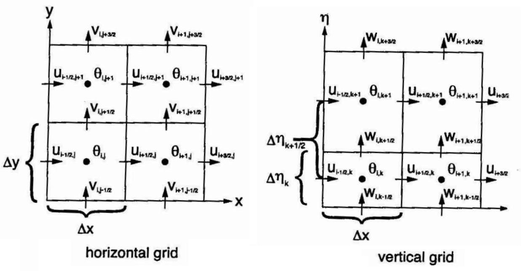 Рисунок 2.1 - Горизонтальная и вертикальная сетки, используемые в динамическом блоке ARW