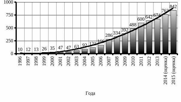 Рисунок 3.1 — Объем валового регионального продукта по Сахалинской области в период с 1996 по 2015 гг., млрд руб.