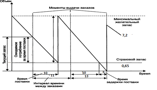 Расчетными параметрами модели с фиксированным интервалом времени между заказами являются (рисунок 3.4):