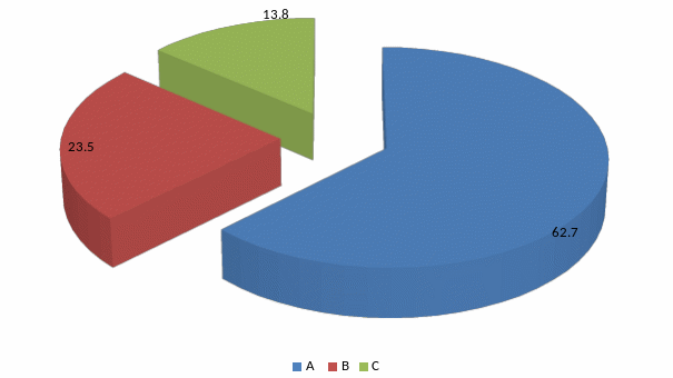 Идеальное соотношение запасов в модели АВС - 70/20/10. А нашем случае требуется снизить объем запасов группы С на 3,8 %, группы В на 3,5 % и увеличить запасы ведущей группы А на 7,3 %.