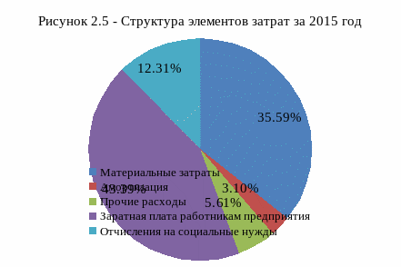 Таблица 2.13 – Структура себестоимости продукции по элементам затрат