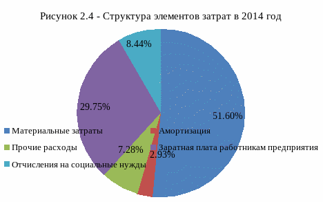 Таким образом, в процессе дальнейшего исследования необходимо проанализировать структуру себестоимости продукции предприятия. Анализ структуры себестоимости продукции по элементам затрат таблица 2.13 Наглядно структура затрат за 2013 - 2014 годы представлена на рисунках 2.3 и 2.4.