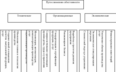 Пути или направления снижения затрат на производство и реализацию продукции рассматриваются с точки зрения способов достижения оптимального сочетания уменьшающихся издержек и повышающегося качества. Этого можно достичь тремя основными путями: техническими, организационными и экономическими рисунок 3.2.