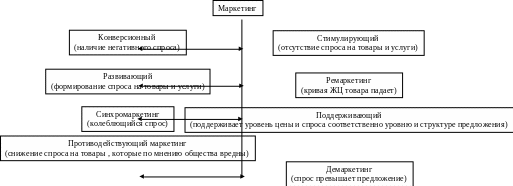 Но в литературе встречаются и виды классификаций Например, если практический маркетинг, то в зависимости от ситуации, складывающейся на с точки состояния спроса, 8 типов [5, c.26] (рис.