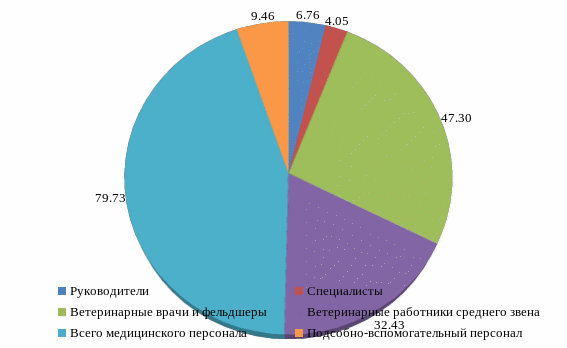 К руководящему составу относятся директор, его заместитель. К медицинскому персоналу верхнего уровня относятся ветеринарные врачи и фельдшеры. Ветеринарные работники среднего звена составляют ветеринарные санитары. Подсобно-вспомогательный персонал включает в себя водителей, сторожей и уборщиц. Дополнительная ставка уборщицы появилась при перераспределении площадей работы и присоединением лечебно-профилактического отделения.