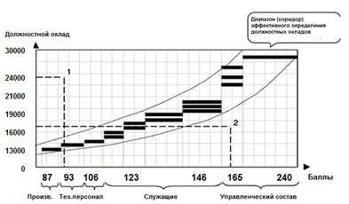 Поставив, таким образом, среднерыночный оклад в качестве минимального на предприятии, мы автоматически поднимаем авторитет и конкурентоспособность предприятия на рынке труда. А 30-процентный диапазон повышения оклада в рамках одной должности является сильным мотивирующим фактором.