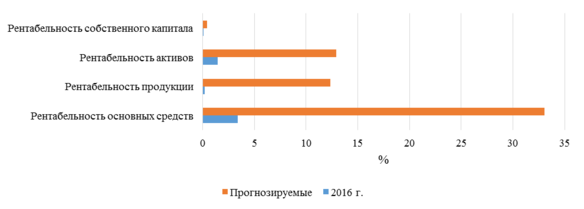 Таким образом можно сказать, что, реализуя предложенные мероприятия, а именно исключение из производства убыточной продукции: услуг по сборке минитракторов и производство навесного оборудования, ООО «Авторемонтный завод» получит дополнительную прибыль в сумме 18926,80 тыс. руб. Среднегодовая выработка работающего вырастет на 68,45 тыс. руб. Фондоотдача вырастет с 2,8 до 5,93 руб. Показатели рентабельности увеличатся: основных средств – на 29,64 п.п., продукции – на 12,16 п.п., активов – на 11,49 п.п., капитала – на 0,35 п.п. Ликвидность и платежеспособность предприятия вырастет: коэффициент концентрации собственного каптала увеличится на 0,11, коэффициент текущей ликвидности – на 0,93, коэффициент обеспеченности собственными средствами на 0,18. Наглядно положительную динамику прогнозных показателей производственно–финансовой деятельности представим на рисунках 3.3, 3.4 и 3.5.