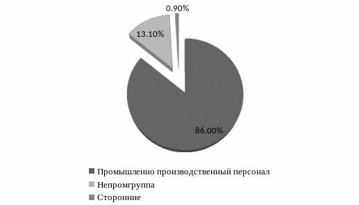 В 2015 году было отработанно ППП – 1358921 чел.час., в 2015 году – 1120974 чел.час., что на 17,5 % меньше по сравнению с 2014 г. Основной причиной этого является большой процент невыхода в общей структуре отработанного времени. В 2014 г. невыхода составили 24 %, в 2015 г. – 29,8. Из них наибольший удельный вес, как в 2014 г., так и в 2015 г. имеют - очередные отпуска (17 % и 16 % ) и болезни (8 % и 9 %). Такая тенденция объясняется отсутствием крупных заказов на протяжении рассматриваемых периодов и как следствие недозагрузка производственных мощностей. В связи с этим большое количество работников было вынужденно уйти в очередные отпуска, в том числе без содержания. На 90,8 % в 2015 г. увеличились часы прогулов, что говорит о низкой трудовой культуре.