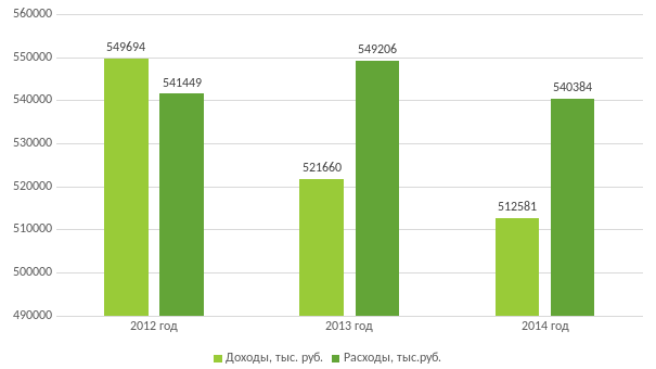 | Расходы, тыс.руб. | 541449 | 549206 | 540384 | 1,43 | -1,6 | -0,19 |