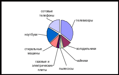 Рассмотрим наиболее продаваемые товары, такие как: телевизоры, холодильники, чайники, пылесосы, газовые и электрические плиты, стиральные машины, ноутбуки, сотовые телефоны.