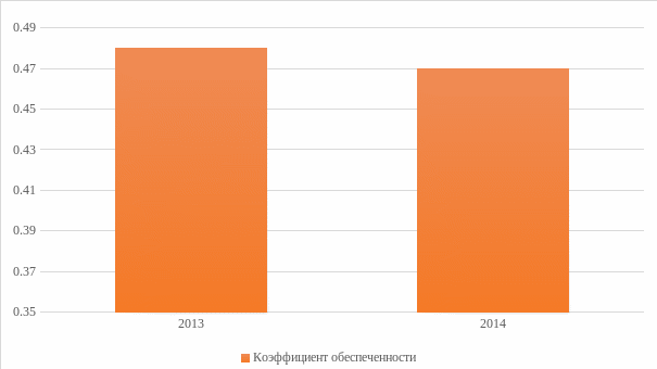 Анализируя рисунок 2.6, мы видим, что за последние два года наблюдается положительная динамика снижения данного коэффициента. В 2014 г. он составлял 0,48. На конец 2015 г. данный показатель коэффициента ставил 0,47, что говорит о том, что предприятие повысило свою платежеспособность.