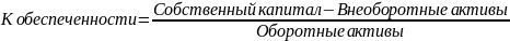 Коэффициент обеспеченности собственными оборотными средствами – определяет степень обеспеченности организации собственными оборотными средствами, необходимыми для ее финансовой устойчивости. Рассчитать данный коэффициент можно с помощью формулы 2.7: